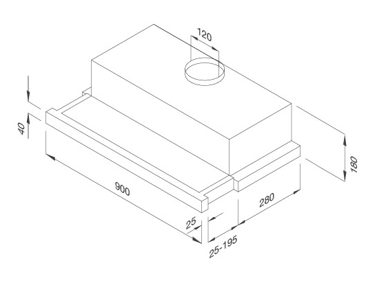 Bản vẽ kỹ thuật máy hút mùi âm tủ K1509 Malloca