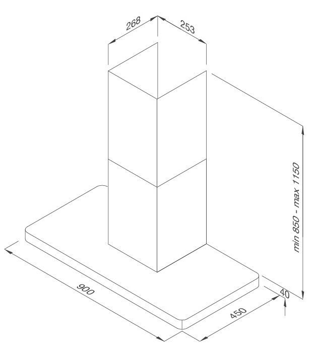 Bản vẽ kỹ thuật máy hút mùi áp tường K900A Malloca
