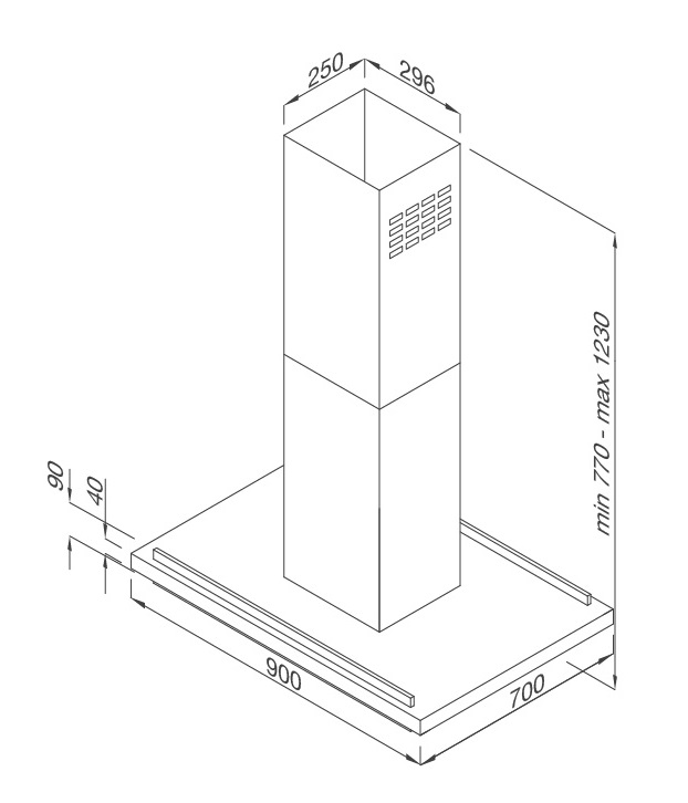 Bản vẽ kỹ thuật máy hút mùi đảo MC 9053 ISLA Malloca