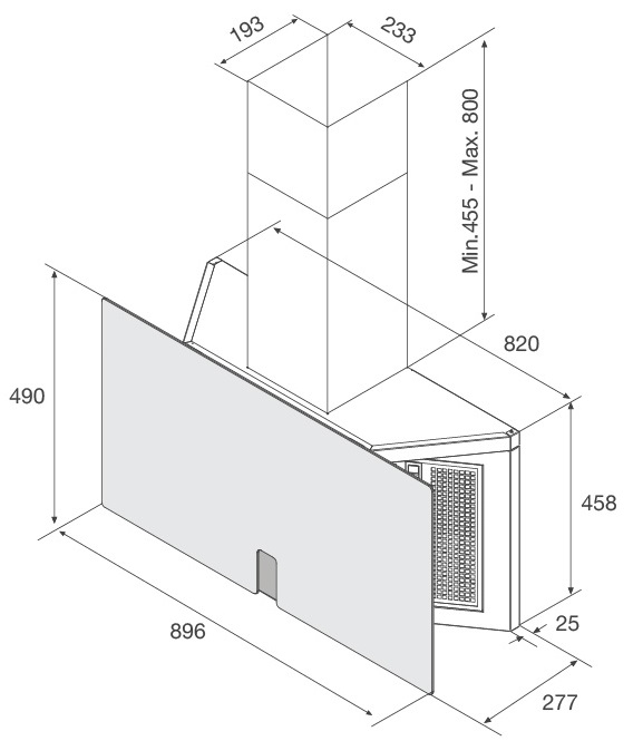 Bản vẽ kỹ thuật máy hút mùi áp tường TIME K15 NERO Malloca