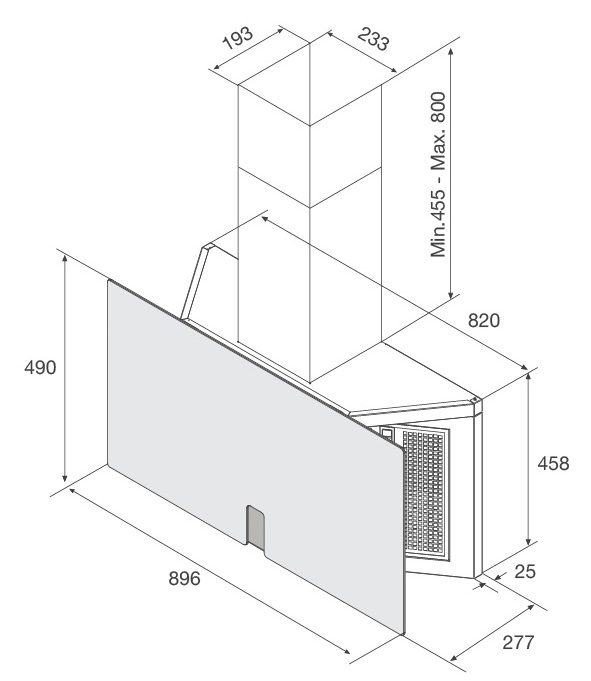 Bản vẽ kỹ thuật máy hút mùi ống khói TIME K-16 BRUNO Malloca