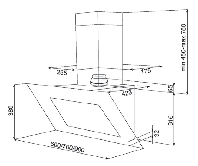 Bản vẽ kỹ thuật máy hút mùi Teka 40483562 DVT 985 B