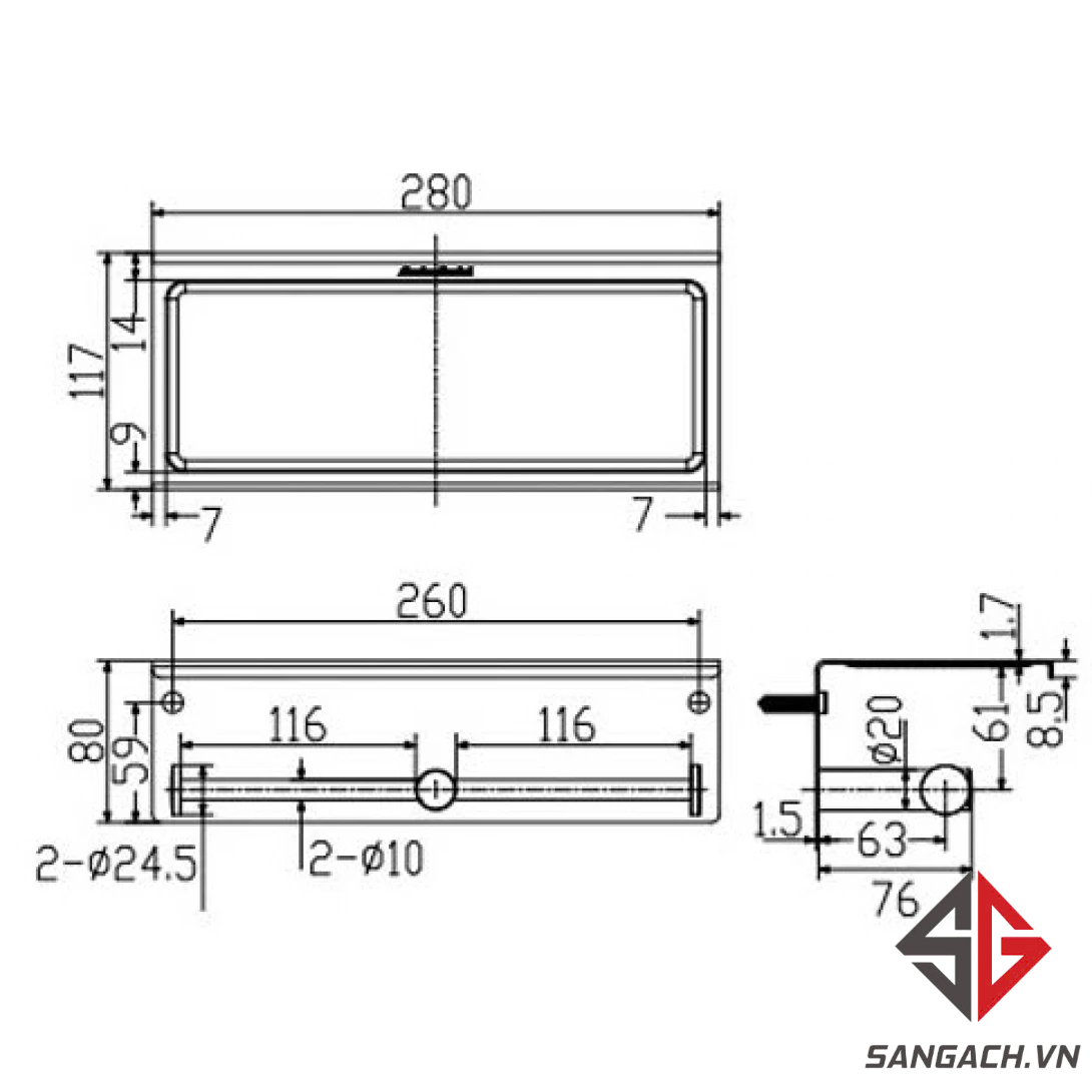 Bản vẽ kích thước khay giấy American Standard WF 1499