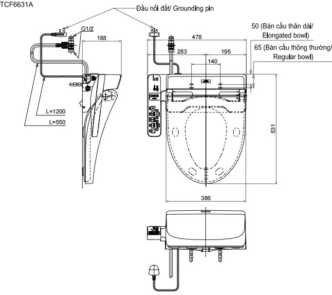 Thông tin cơ bản nắp rửa điện tử TOTO TCF6631A