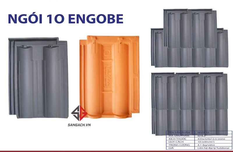 NGÓI 10 TRÁNG MEN ENGOBE GT500 Ngói có màu xám hợp phong thủy, thẩm mỹ, tạo cảm giác vững chắc cho ngôi nhà. Đặc biệt ngói được tráng lớp Men Engobe giúp ngói có khả năng chống thấm tuyệt đối, cũng như cách âm, cách nhiệt tốt hơn. Ngoài ra, màu sắc đẹp, độ bền cao, giá thành tốt hơn nhiều so với những laoij ngói tráng men thường.