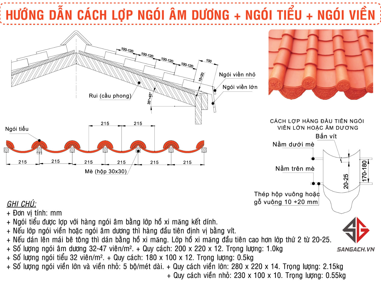 Ngói Âm Dương là một loại ngói truyền thống với thiết kế đặc trưng của văn hóa Á Đông, thường được sử dụng trong các công trình như chùa, đền, nhà cổ, resort và các khu du lịch. Dưới đây là một số thông tin chi tiết về Ngói Âm Dương, cách lợp ngói, và các ứng dụng phổ biến.