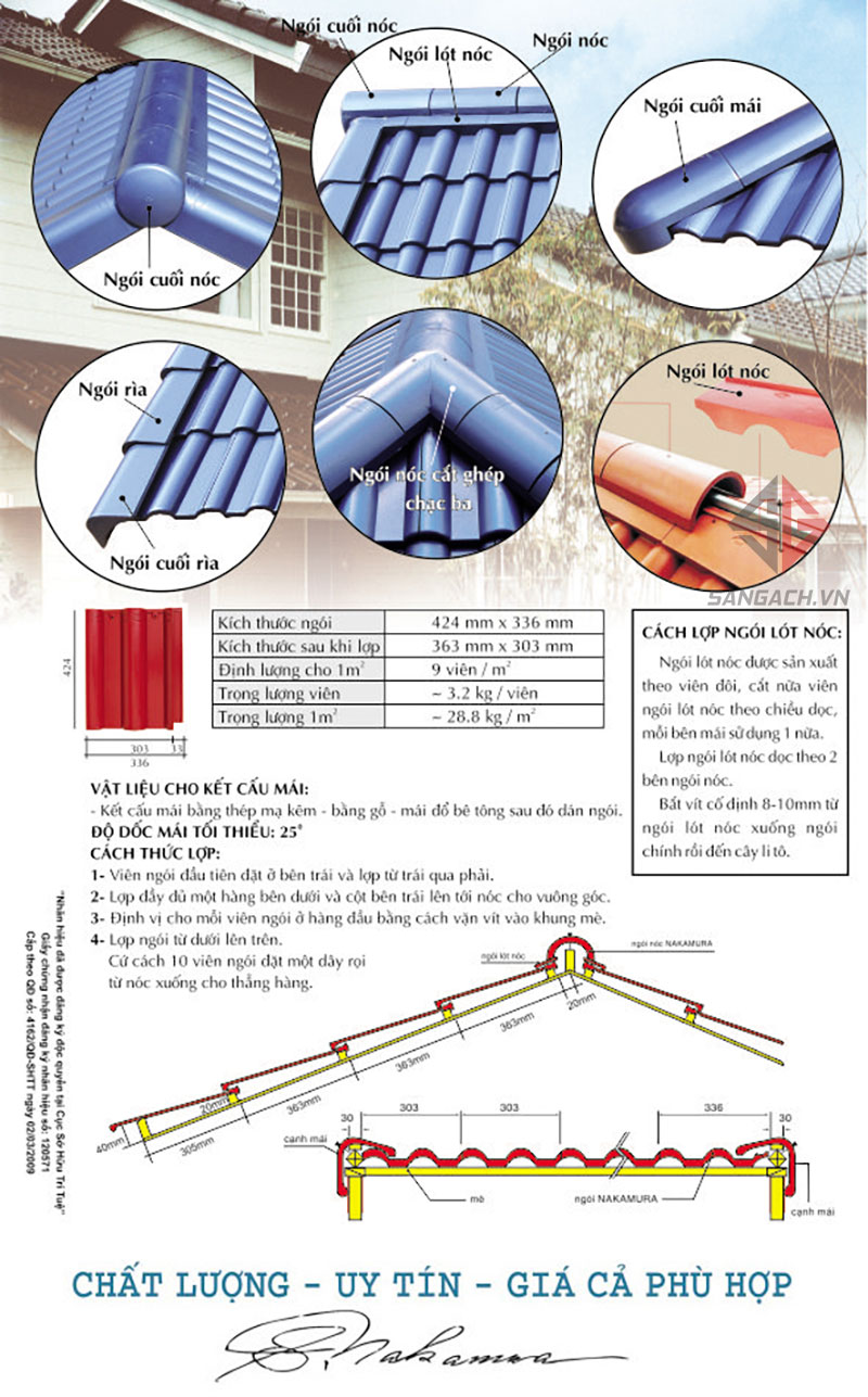 Định lượng ngói 1 m2: 9 viên / m2.