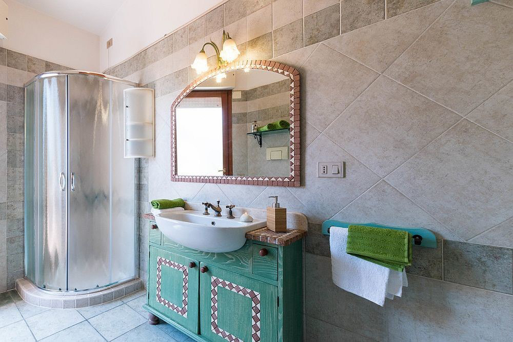 Với những không gian nhà tắm rộng, bạn có thể phân ngách các khu vực với nhau. Ví dụ bạn có thể làm vách chắn nhà tắm để tạo ra không gian riêng khi tắm và không gây bắn nước ra xung quanh. Đồng thời, bồn rửa mặt được thiết kế cách điệu với phần chân đế như một tủ trang điểm giúp mọi người có được tâm thế tốt nhất mỗi khi bước vào gian phòng này.