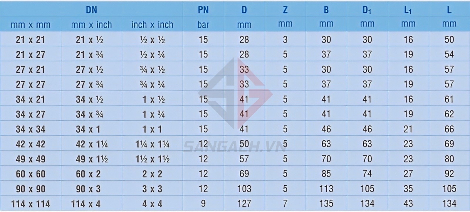 Thông số sản xuất theo tiêu chuẩn phụ kiện uPVC Bình Minh hệ Inch – dòng ren trong loại dày.