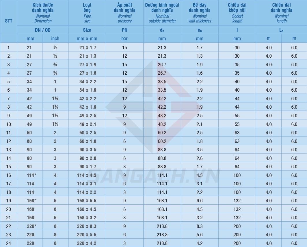 - Chất liệu: PVC không hóa dẻo (uPVC), cho độ bền và độ ổn định cao.