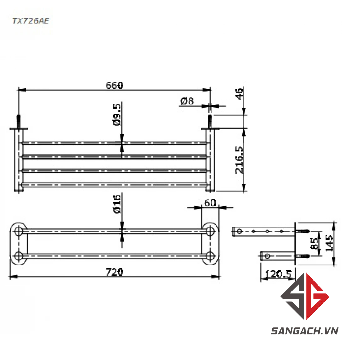 Thông tin cơ bản thanh treo khăn TOTO TX726AE Hai Tầng