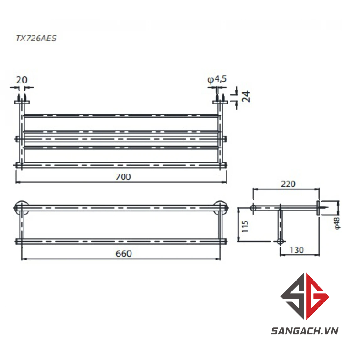 Thông tin cơ bản thanh treo khăn TOTO TX726AES Hai Tầng