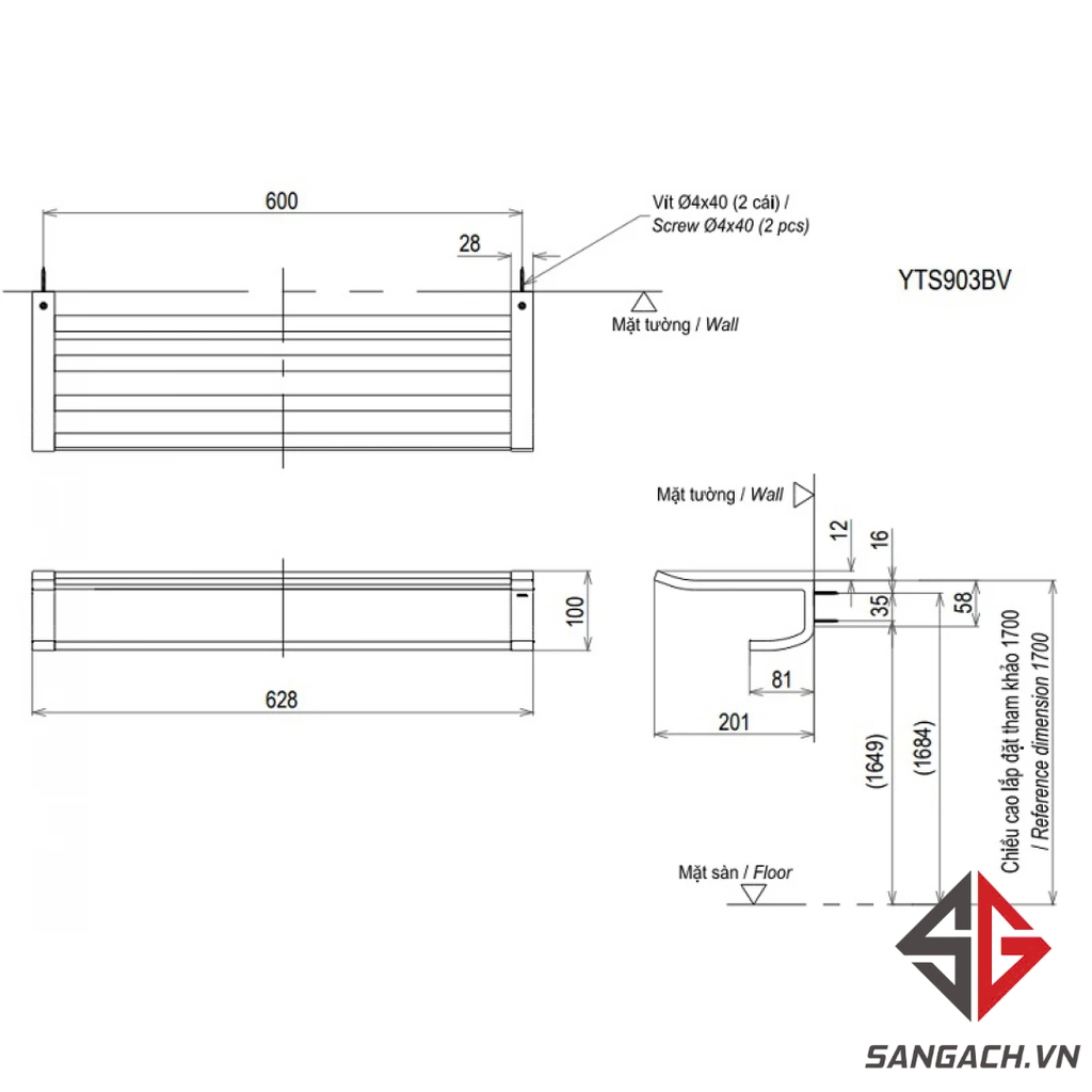 Thông tin cơ bản thanh treo khăn TOTO YTS903BV Hai Tầng