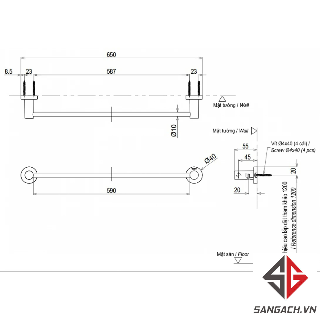 Bản vẽ thanh vắt khăn TOTO YT406S6RV Inox