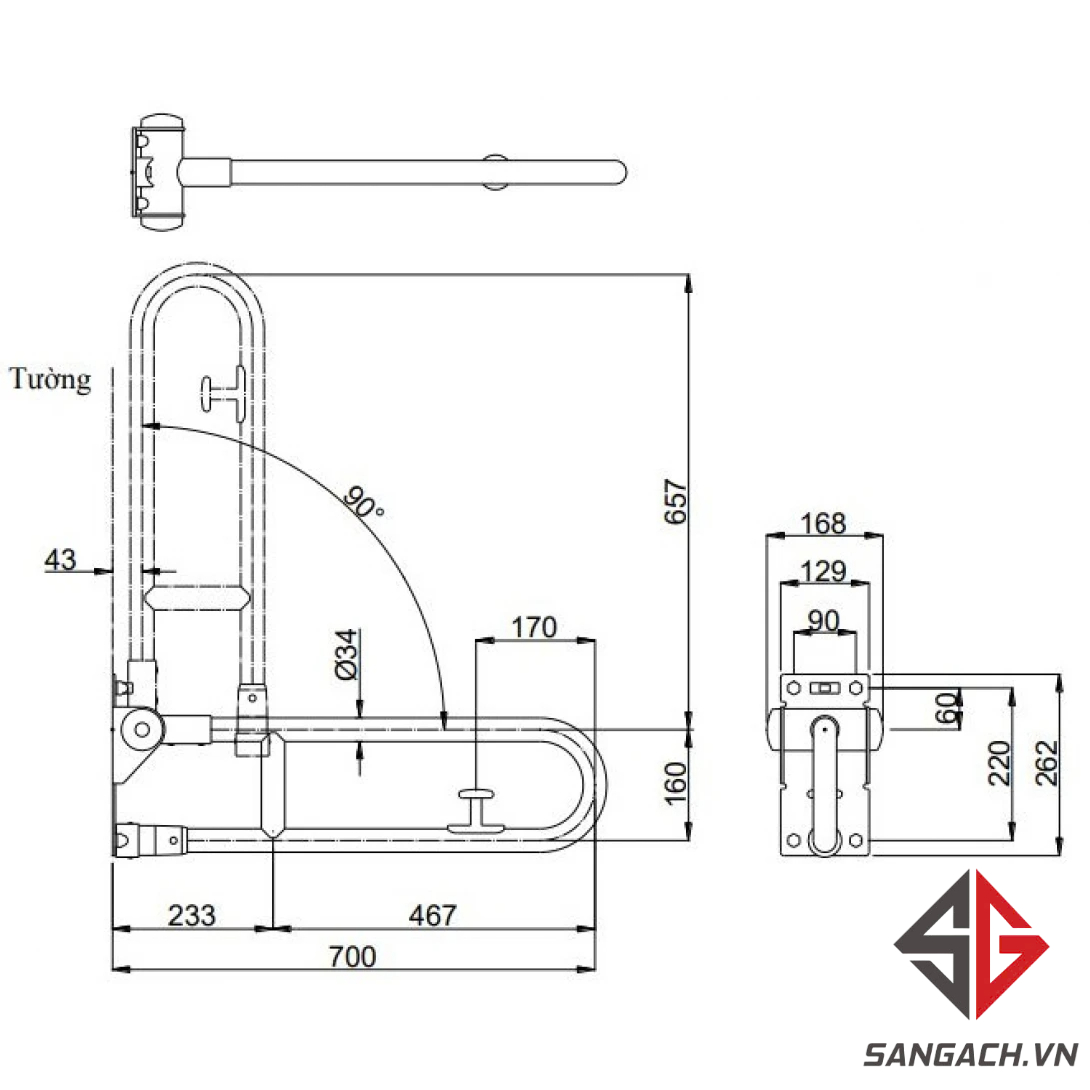 Bản vẽ thanh vịn T113HK7 T110D17S TOTO