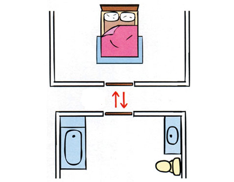 Kiêng kỵ tuyệt đối không nên bố trí nhà vệ sinh đối diện phòng ngủ