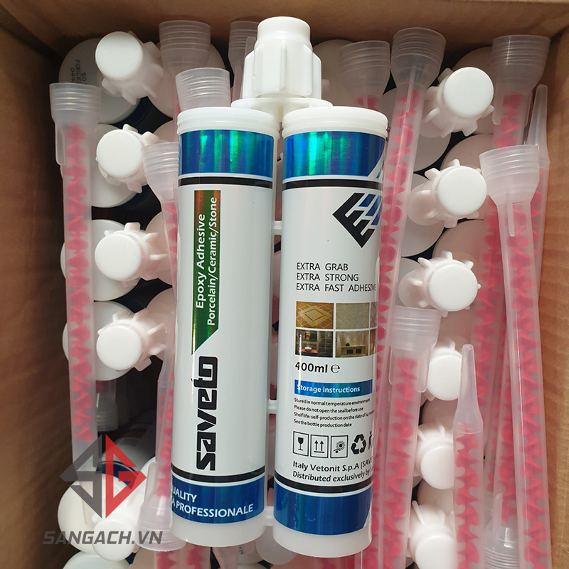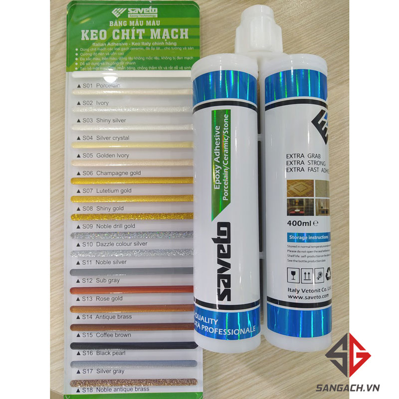 Keo Saveto là loại keo chà ron epoxy gồm hai thành phần: Thành phần thứ nhất là chất kết dính có độ trong suốt cao, thành phần thứ hai giúp đông cứng và tạo màu. Khi chà ron gạch, hai thành phần này được trộn với tỷ lệ 1: 1 bằng vòi trộn để tạo ra hợp chất keo trít gạch tốt nhất.