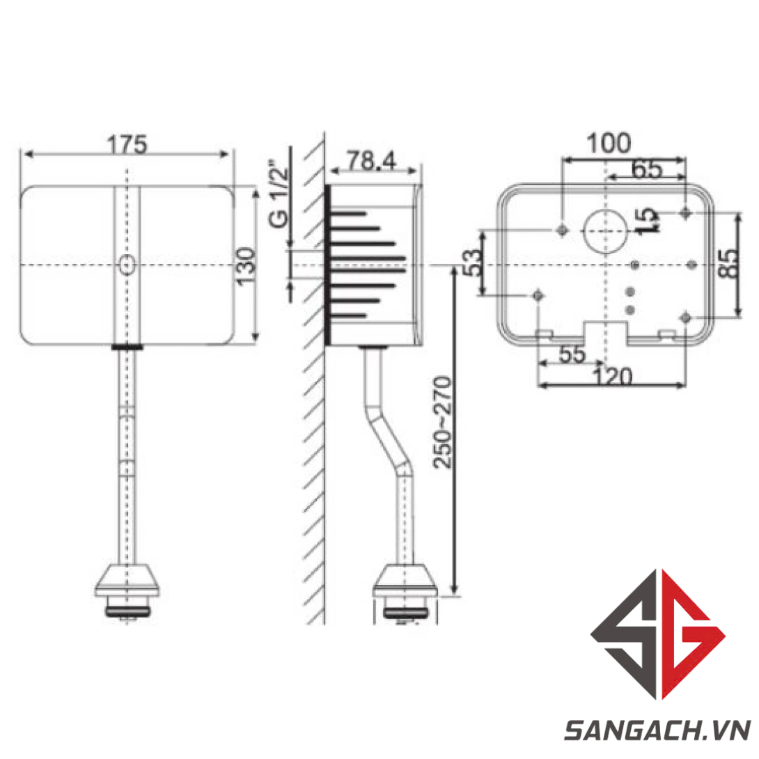 Bản vẽ kích thước van xả tiểu American WF-8609 gắn tường: