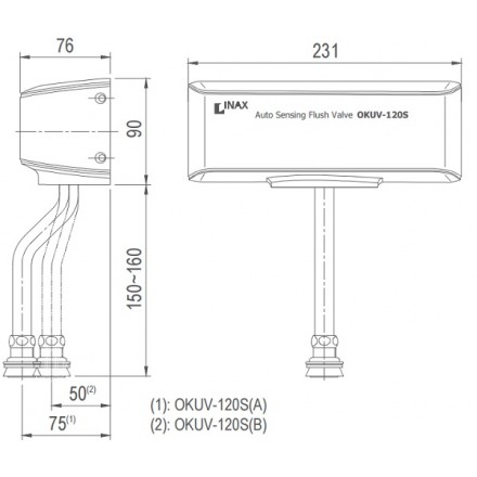 Bản vẽ kỹ thuật van xả tiểu cảm ứng INAX OKU-120S(A/B)