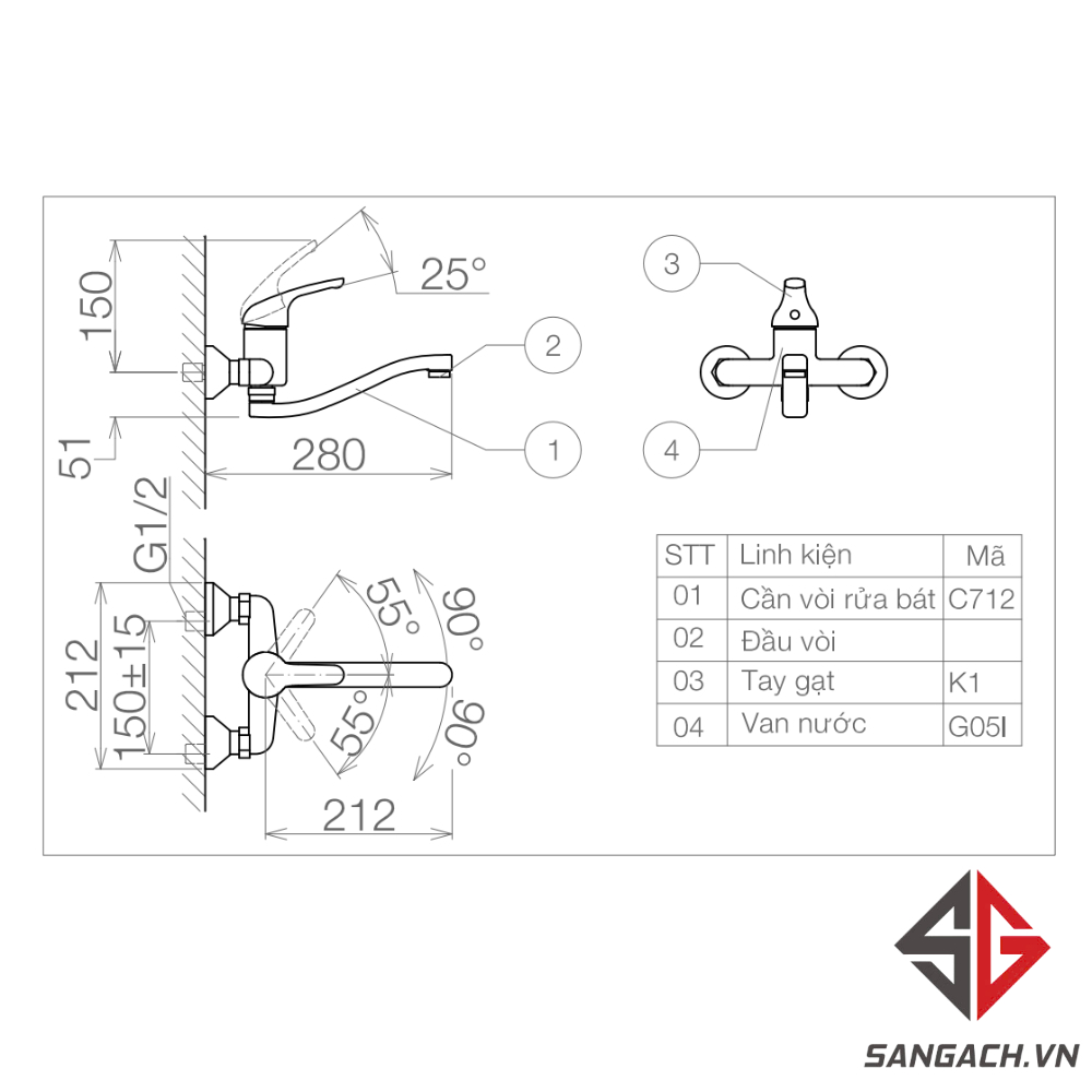 Hướng dẫn lắp đặt và hướng dẫn sử dụng Vòi Bếp Viglacera VG701 Nóng Lạnh Gắn Tường:
