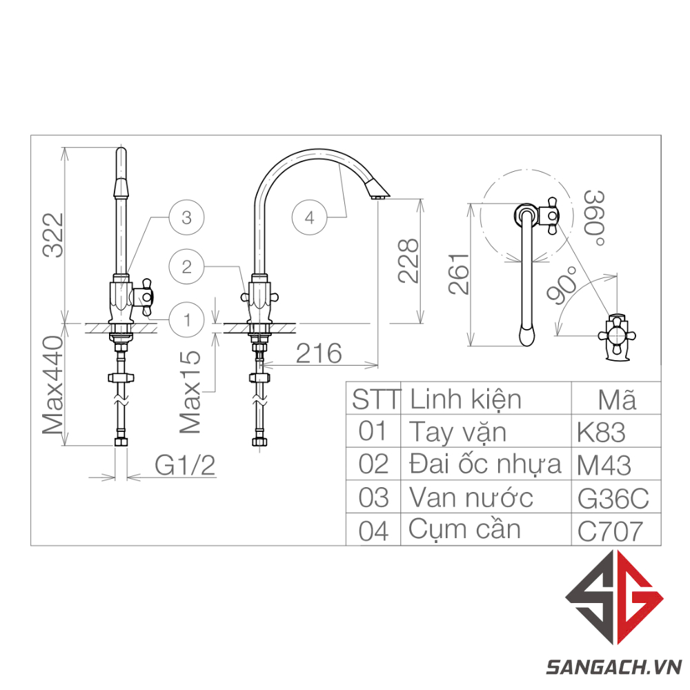 Hướng dẫn lắp đặt và hướng dẫn sử dụng Vòi Bếp Viglacera VG707 Lạnh:
