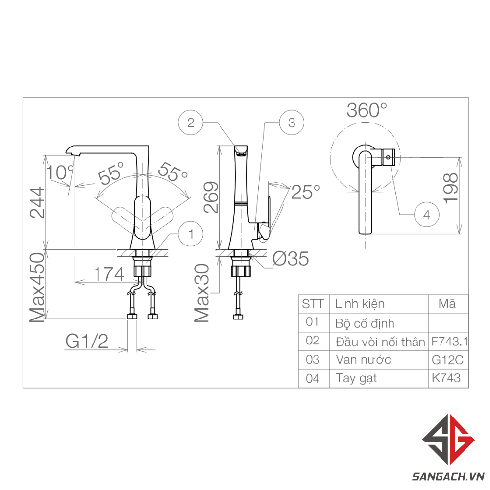 Bản vẽ Vòi Bếp Viglacera VG707 Lạnh: