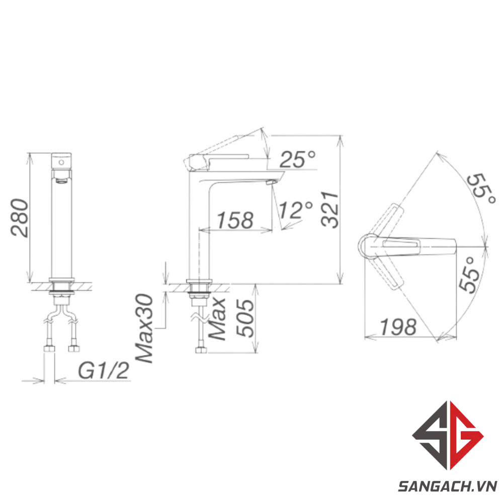 Bản vẽ của Vòi Chậu Cao Nóng Lạnh Viglacera VG125: