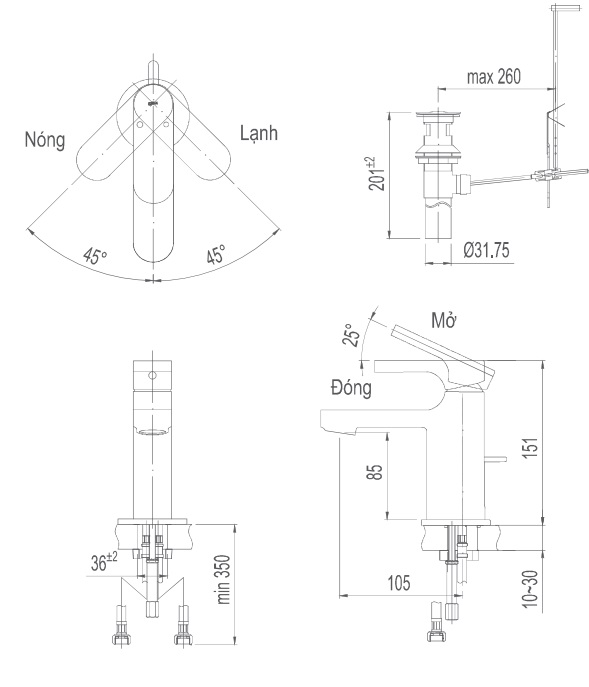 Bản vẽ kỹ thuật Vòi Lavabo INAX LFV-6002S Nóng Lạnh Gật Gù: