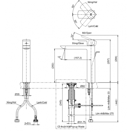 Bản vẽ kỹ thuật Vòi Lavabo TOTO TLG02307V Nóng Lạnh Cổ Cao: