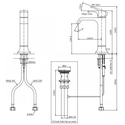 Bản vẽ kỹ thuật Vòi Lavabo TOTO TLG08303V Nóng Lạnh Cổ Cao: