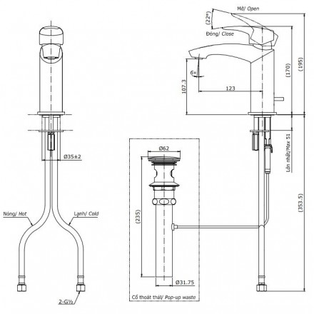 Bản Vẽ Kỹ Thuật Vòi Lavabo TOTO TLG09301V Nóng Lạnh: