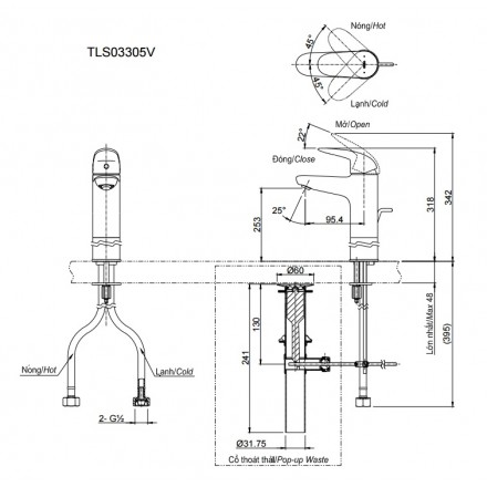 Bản vẽ kỹ thuật Vòi Lavabo TOTO TLS03305V Nóng Lạnh Cổ Cao: