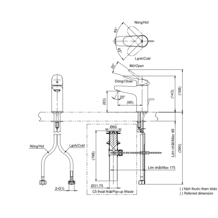 Bản Vẽ Kỹ Thuật Vòi Lavabo TOTO TLS04301V Gật Gù Nóng Lạnh:
