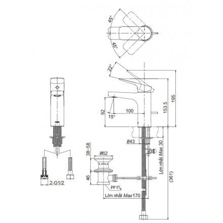 Bản vẽ kỹ thuật Vòi Lavabo TOTO TTLR302F-1N Nóng Lạnh: