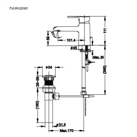 Bản vẽ kỹ thuật Vòi Lavabo TOTO TVLM102NSR Nóng Lạnh: