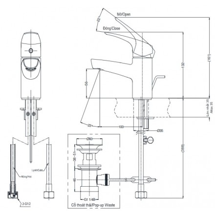 Bản vẽ kỹ thuật Vòi Lavabo TOTO TVLM105CR Nóng Lạnh: