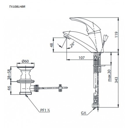 Bản vẽ kỹ thuật Vòi Lavabo TOTO TX108LHBR Nóng Lạnh: