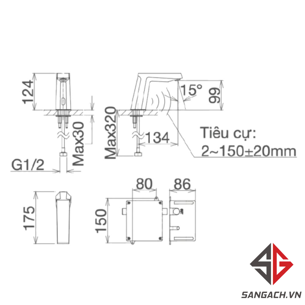 Bản vẽ kỹ thuật vòi chậu cảm ứng Viglacera VG1028: