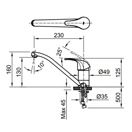 Bản vẽ kỹ thuật Vòi Rửa Chén Nóng Lạnh INAX SFV-302S: