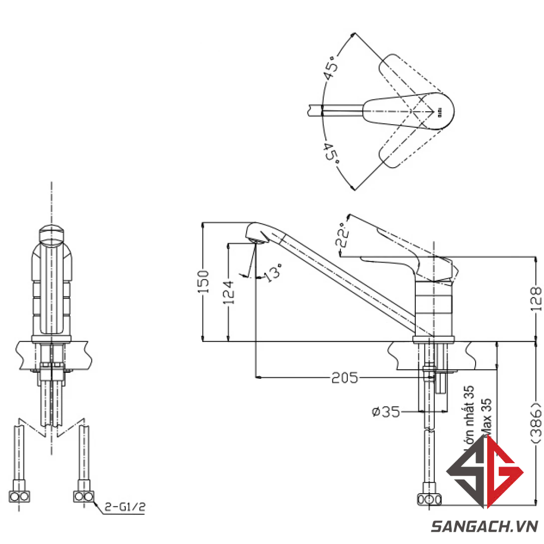 Bản vẽ kỹ thuật Vòi Rửa Chén TOTO TTKC301F Nóng Lạnh: