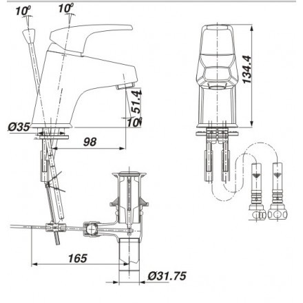 Bản vẽ kỹ thuật Vòi Rửa Nóng Lạnh INAX LFV-282S Xả Ty: