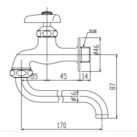 Bản vẽ kỹ thuật Vòi Rửa Nước Lạnh INAX LF-12-13: