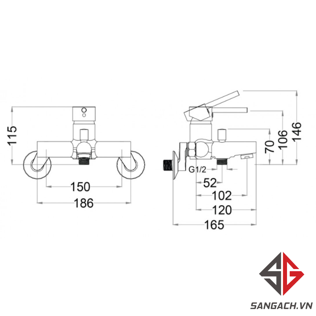 Thông tin cơ bản vòi sen tắm Caesar S353C nóng lạnh
