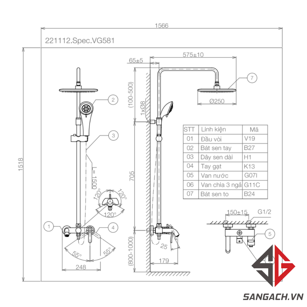 Hướng dẫn lắp đặt và sử dụng Vòi Sen Cây Viglacera VG581 Nóng Lạnh: