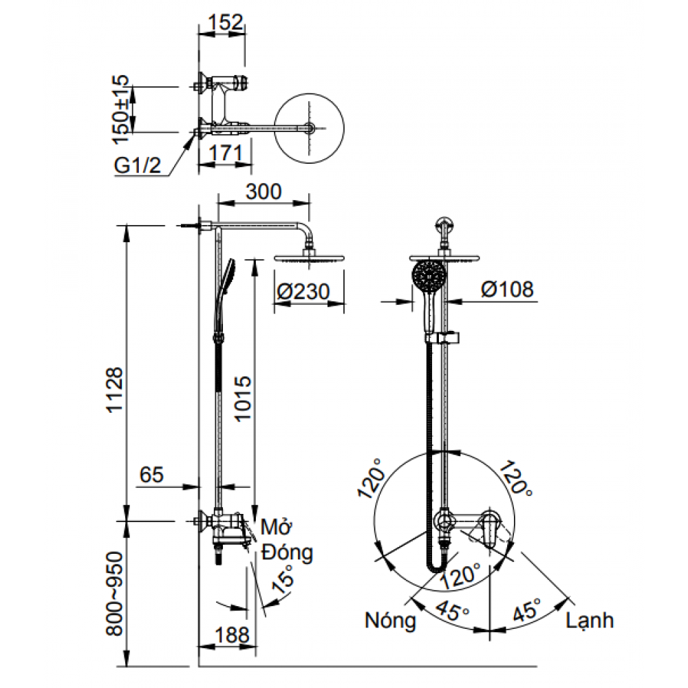 Bản vẽ kỹ thuật vòi sen cây tắm INAX BFV-915S
