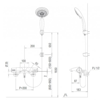Bản vẽ kỹ thuật vòi sen tắm lạnh INAX BFV-5103T-3C