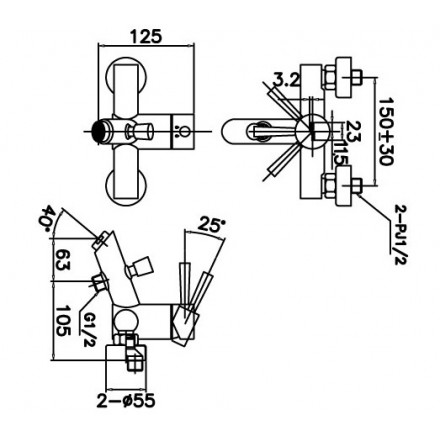 Bản vẽ kỹ thuật vòi sen tắm INAX BFV-8000S-1C