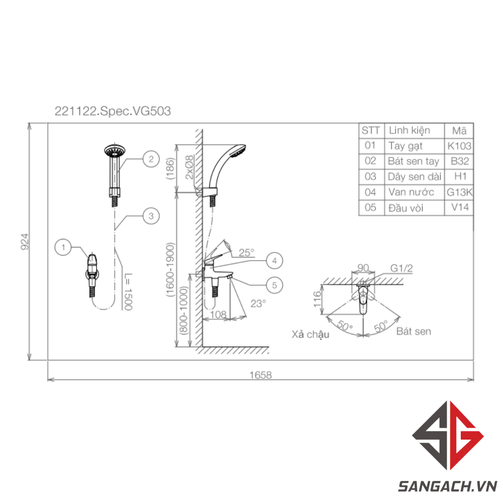 Hướng dẫn lắp đặt và sử dụng Vòi Sen Tắm Viglacera VG503 Lạnh: