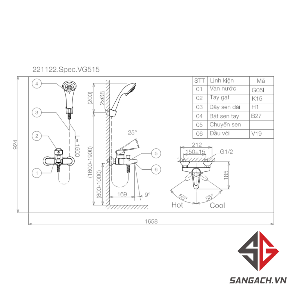 Hướng dẫn lắp đặt và sử dụng Vòi Sen Tắm Viglacera VG515 Nóng Lạnh: